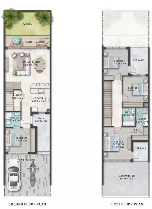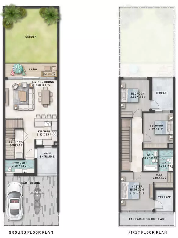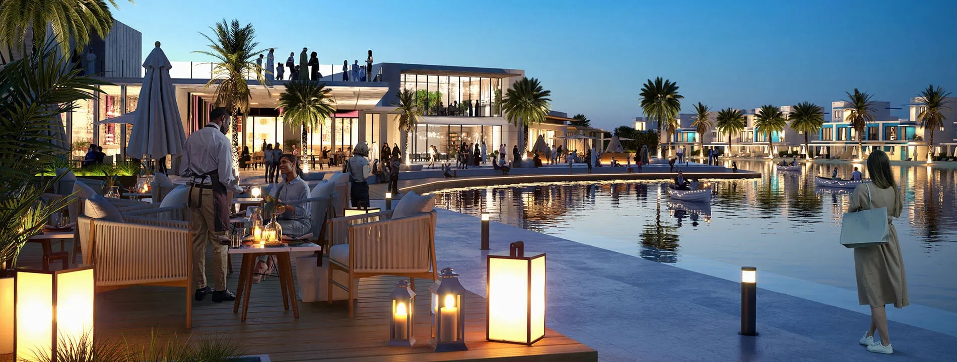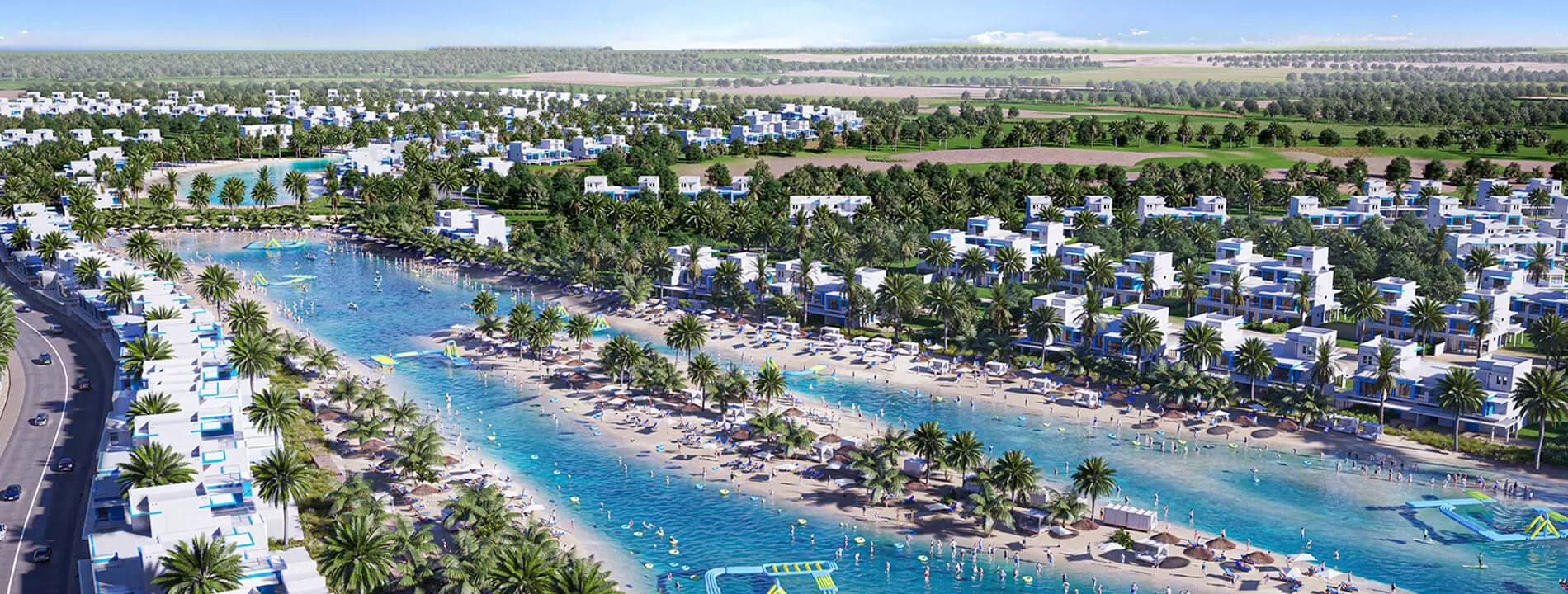 What could be more enchanting than an extravagantly large azure blue lagoon? The edge of the lagoons leads up to a boardwalk to your new home. Presenting Santorini at DAMAC Lagoons, plush townhouses and villas featuring white-washed exteriors and blue touches across, evoking quintessential Mediterranean motifs.