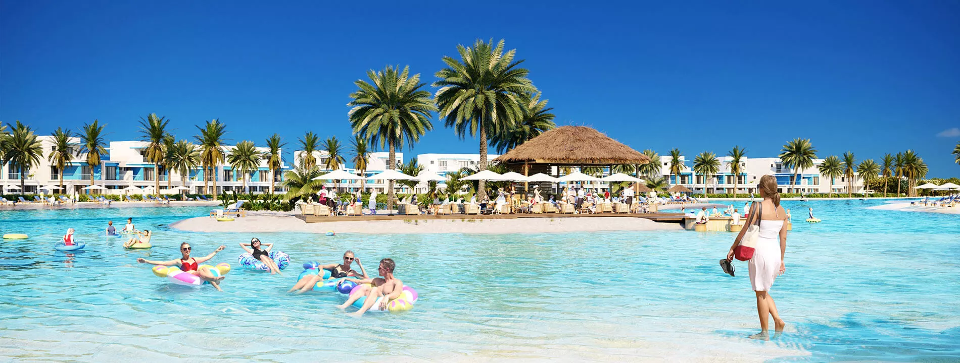 You can never get enough of excitement in the water at DAMAC Lagoons. But, when the day is finally done, amble across the sands and into a clearing fringed by palms. Pick a cosy spot, recline under the tranquil night sky and take in big screen movie magic under the stars, while you stay afloat in the shallows.